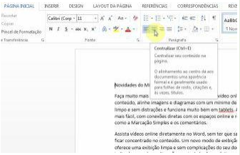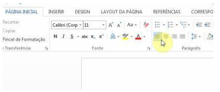 Para alinhar um determinado parágrafo, deve-se antes posicionar o cursor sobre qualquer ponto do mesmo. Vamos agora aplicar o alinhamento Centralizar no título do documento.