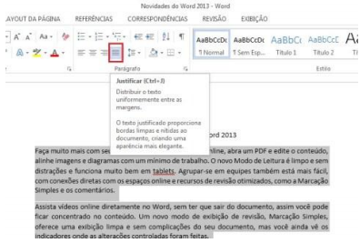 A maioria dos trabalhos escolares, de faculdade e documentos oficiais são Justificados, portanto, é importante que você aprenda bem esta funcionalidade do Word 2013.