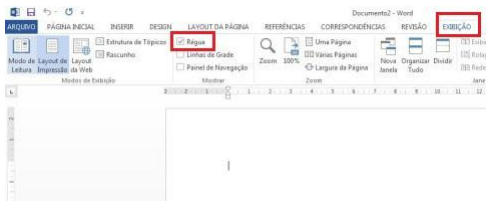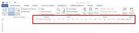 Caso você não encontre a Régua horizontal, ela pode estar desabilitada, para habilitá-la clique na guia Exibição e no grupo Mostrar escolha a opção Régua.
