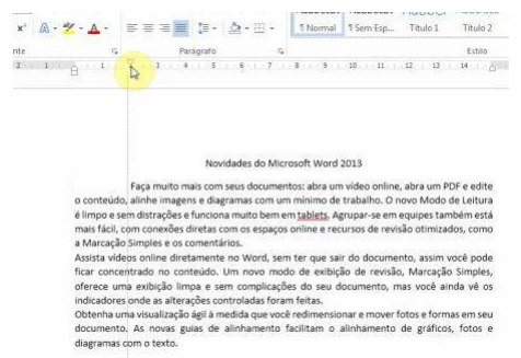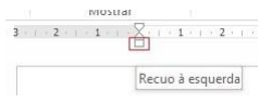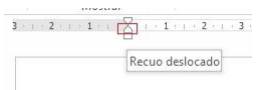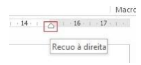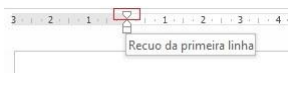 Para evitar esses erros de espaços, o Word oferece um recurso chamado de Recuo, fica localizado na régua horizontal e permite definir um espaço inicial da primeira linha ou demais linhas de cada parágrafo.