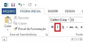 Após selecionar o trecho do texto que deseja aplicar o Itálico, clique no botão Itálico.