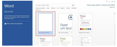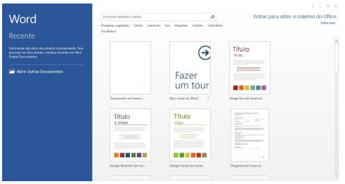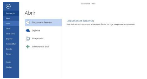 Já podemos notar novidades logo na tela inicial do Word. No lado esquerdo dessa tela existem os documentos usados recentemente e a opção de abrir outro documento que não esteja na lista.