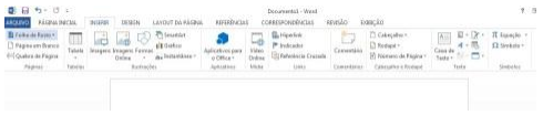 Guia Inserir: Esta guia permite inserir imagens, símbolos, cabeçalhos, tabelas, gráficos, número de página e algumas novidades como a de Inserir Vídeo Online.
