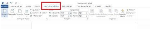 Guia Layout da Página: São manipulados por essa guia: Configuração de Página, espaçamento, etc.