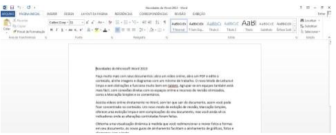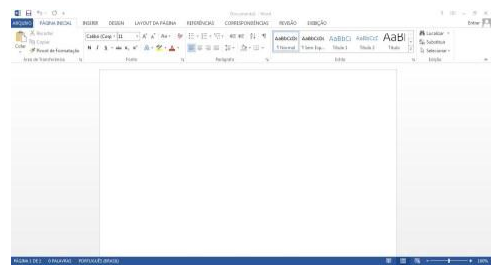 Após o clique, seu documento será exibido na janela do Word 2013. Sempre que desejar abrir um arquivo o processo será o mesmo, variando apenas o arquivo e o diretório em que este foi salvo.