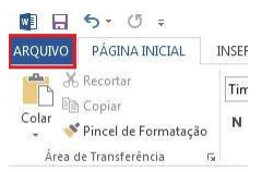 Botão Arquivo: Ao clicar sobre ele será exibido opções como Informações, Novo, Abrir, Salvar, Salvar como, Imprimir, etc. Portanto, clique sobre ele e visualize essas opções.