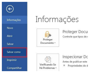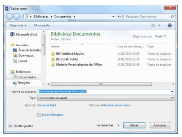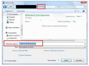 Após o clique, a caixa de diálogo Salvar como será aberta, onde devemos informar o nome do arquivo e o local onde será salvo.