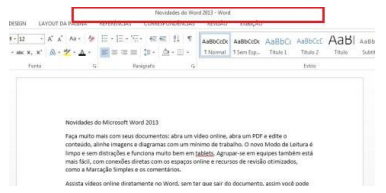 Após o clique, o documento é salvo e seu nome é exibido na Barra de Título do Word 2013. Observe a Barra de Título.
