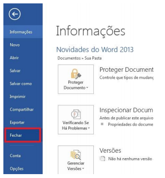 Para fechar o documento atual, clique na guia Arquivo e selecione a opção Fechar.