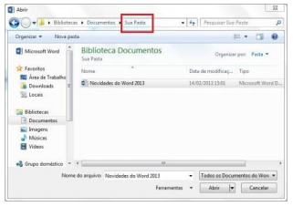 Vamos localizar a sua pasta onde o documento foi salvo. Para isto, procure a sua pasta e abra-a.