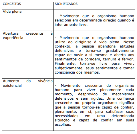 QUADRO XIX. ALGUNS CONCEITOS E SIGNIFICADOS DE ACORDO COM CARL ROGERS
