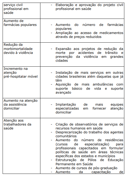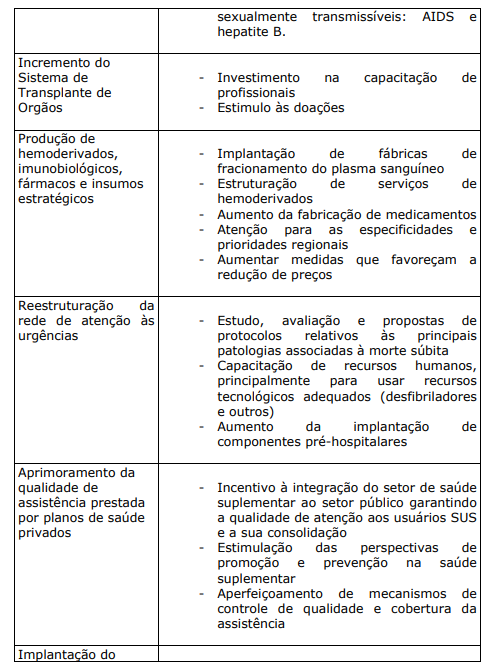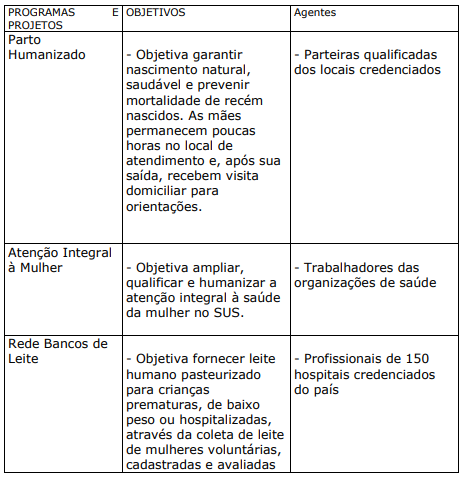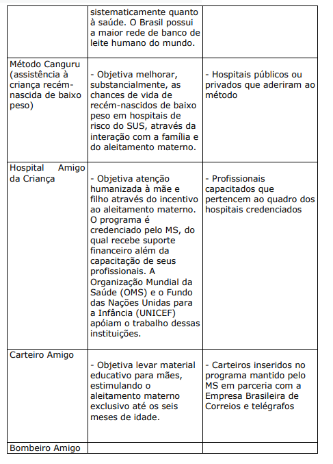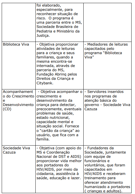 a) PROJETOS E PROGRAMAS CRIADOS OU ESTIMULADOS PELO MINISTÉRIO DA SAÚDE: