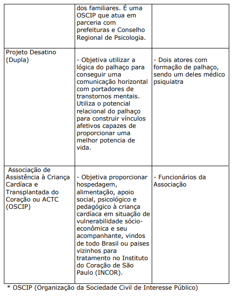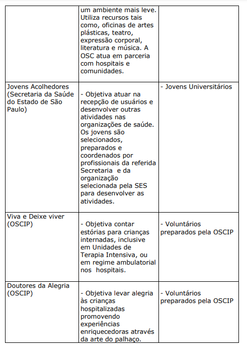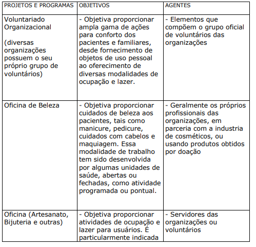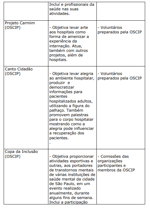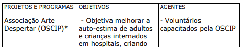 c) PROJETOS E PROGRAMAS DAS ORGANIZAÇÕES DE SAÚDE DIRECIONADOS AOS USUÁRIOS E FAMILIARES COM APOIO DE ENTIDADES PARCEIRAS