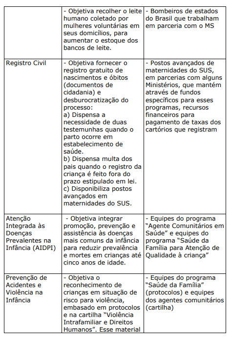 BIBLIOGRÁFICAS PROGRAMAS E PROJETOS DA SAÚDE DA CRIANÇA: responsabilidades compartilhadas em benefício das crianças brasileiras. Revista