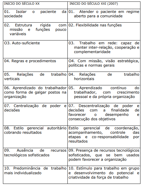 QUADRO II. MUDANÇAS NOS OBJETIVOS E CARACTERÍSTICAS DO HOSPITAL ENTRE O INÍCIO DO SÉCULO XX E INÍCIO DO SÉCULO XXI (2006):