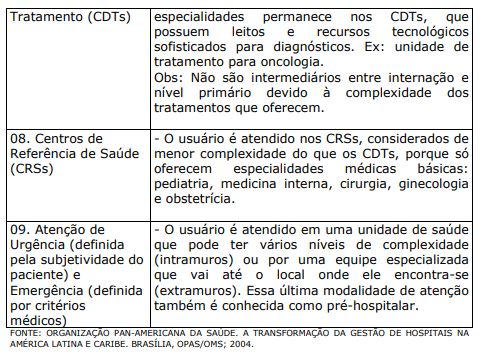 a) Nível de atenção da assistência Secundário: atende usuário de nível médio de complexidade Terciário/Quaternário: atendem usuário de maior complexidade