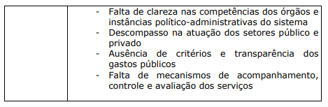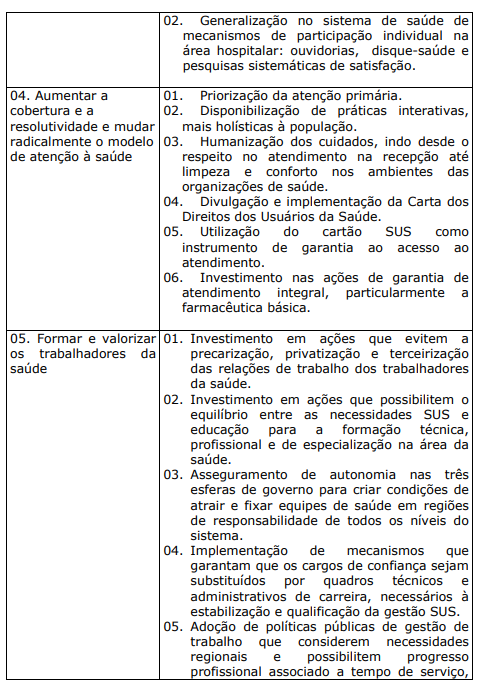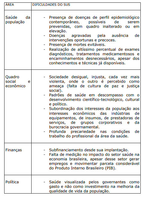 Embora o SUS tenha obtido conquistas importantes, ainda não conseguiu resolver a maior parte dos problemas de saúde da população, sendo os dois principais: a dificuldade de acesso aos serviços e o mau relacionamento com os profissionais da área. Com a finalidade de dar suporte ao atendimento do SUS, em maio de 2000, o Ministério da Saúde regulamentou o Programa Nacional de Humanização da Assistência Hospitalar (PNHAH) que objetivava promover uma nova cultura no atendimento baseada, principalmente, em um melhor relacionamento entre todos os atores envolvidos (Cap. VI). A proposta de atenção à saúde da população no período 2004-2007, contida no Plano Nacional de Saúde do Ministério, fornece a referência de quais medidas e grupos populacionais estão sendo priorizados para resolver os principais problemas do sistema (Cap. VII). O trabalhador da área da saúde, neste livro, é abordado dentro das suas principais dificuldades, que são causadas pelo seu despreparo profissional e pelas más condições de trabalho nas organizações de saúde (Cap. III).