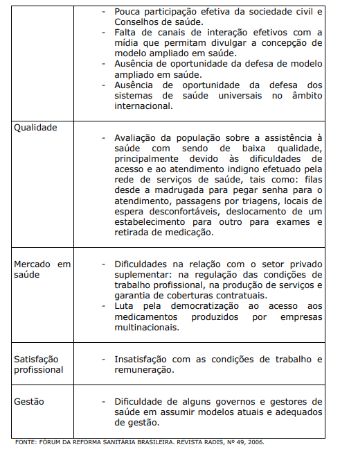 BIBLIOGRÁFICAS FÓRUM DA REFORMA SANITÁRIA BRASILEIRA. SUS PRA VALER: universal, humanizado e de qualidade. Revista RADIS: comunicação em saúde, nº 49 (FIOCRUZ), 2006.