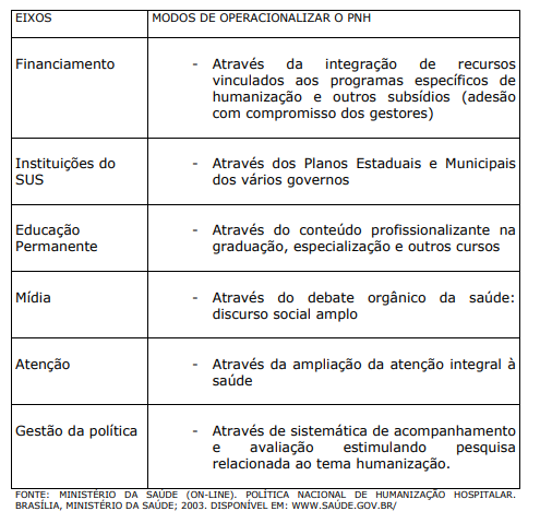 MINISTÉRIO DA SAÚDE (on-line). Política Nacional de Humanização Hospitalar. Brasília, Ministério da Saúde; 2003. Disponível em: www.saúde.gov.br/