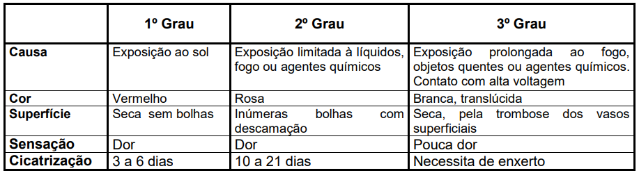 Podemos dividir a queimadura em graus, de acordo com a profundidade: