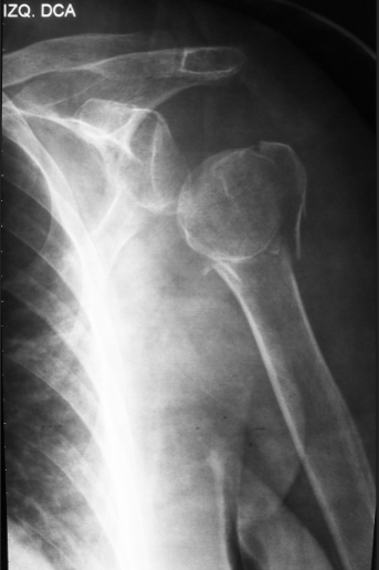 A seguir, um exemplo característico de luxação de ombro: