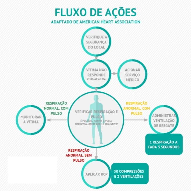 A American Heart Association orienta as ações de acordo com o fluxo apresentado abaixo: