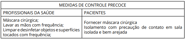 O paciente deve aguardar atendimento e ser atendido em uma área separada ou sala específica visando o isolamento respiratório. A sala deve ser mantida com a porta fechada, janelas abertas e ar-condicionado desligado.