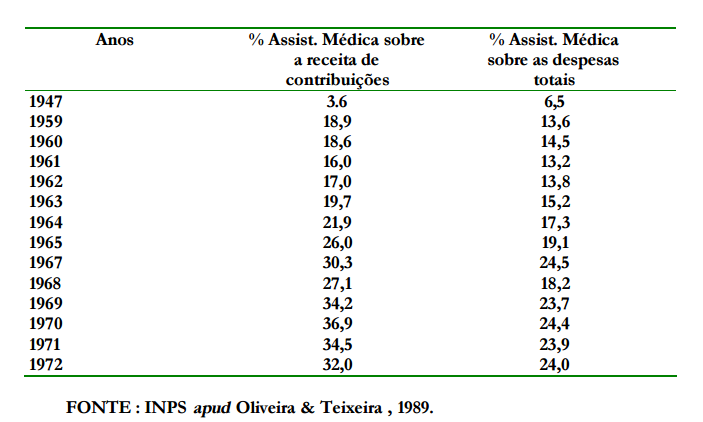 6 . devido a uma falta de clareza e de uma definição em relação à política de saúde, a história da saúde permeia e se confunde com a história da previdência social no Brasil em determinados períodos.