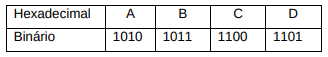A = 10, B = 11, C = 12, D = 13, E = 14 e F = 15.