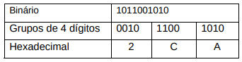 Vejamos um exemplo numérico: 3E0,A (16) = 3×162 + E×161 + 0×160 + A×16-1 = 3×256 + 14×16 + 0×1 + 10×0,0625 = 992,625