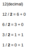 Observe que é só lerem-se os números de baixo pra cima, ou seja, 1100 é 12 em binário.