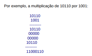 O produto de números binários é especialmente simples, já que o 0 multiplicado por qualquer coisa resulta 0, e o 1 é o elemento neutro do produto.