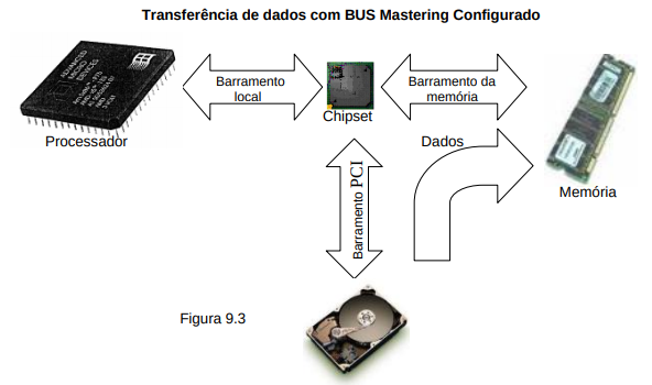 Podemos aumentar o desempenho do computador se utilizar o recurso de Bus Mastering, que também é uma forma de DMA, pois desta forma, as transferências de dados do disco rígidos passarão a ser controlada pelo chipset da placa mãe e não diretamente pelo processador que com isso passará a ter mais folga para execução de outras tarefas sendo que os dados estão passando para memória ao mesmo tempo.