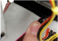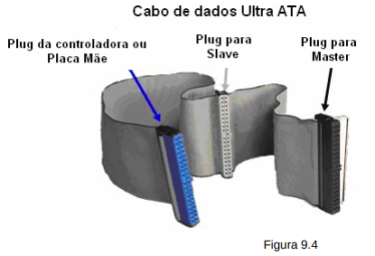 O cabo no qual o Disco Rígido é conectado tem dois conectores, podendo desta forma ser utilizado por dois discos na mesma controladora, porém sempre que instalamos o disco devemos tomar cuidado com qual conector fixar o disco, pois em geral a maioria dos computadores possuem apenas um disco rígido, dessa forma devemos sempre fazer a ligação no conector número 2, impedindo desta forma que a haste do cabo não se torne uma antena que capte ondas eletromagnéticas tirando o desempenho na transmissão de dados, veja figura abaixo.
