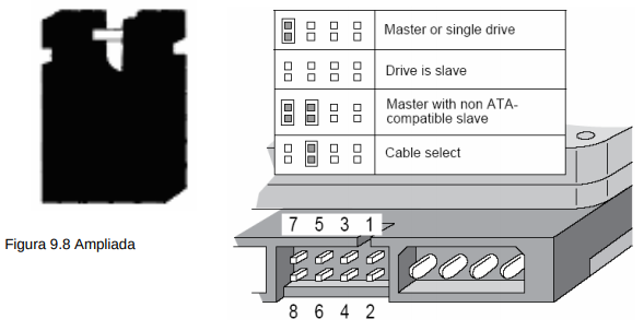 Observe a figura 1.50 que mostra o formato do jumper., e a configuração que pode ser feita para definição quanto ao disco rígido.