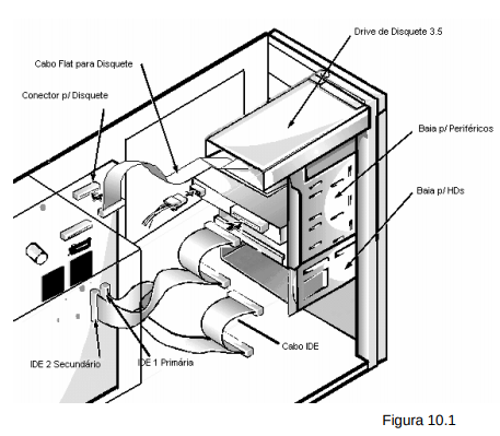 Os Dispositivos IDE variam de discos fixos, Fitas Dat, Drivers de CD Rons, etc. Porém o mais usual e conhecidos são os discos físicos, presentes em quase todos os computadores. O padrão IDE inicialmente tinham um problema que era o ruído entre o disco rígido e a controladora, o que afetava os dados, com isto a Westrn Digital que foi a responsável pela solução deste problema com uma solução bem simples, ora se o problema é o ruído vamos eliminar o ruído. Com isto apresentou um disco rígido em que a controladora estava embutido no disco rígido, com isto o problema foi solucionado, esta tecnologia passou a ser chamada de IDE (Integrated Drive Eletronics), pois a controladora está integrada ao disco rígido. A conexão de discos IDE ao computador é chamada de ATA (AT Attachment) que é feita através de um cabo de 40 vias a um conector de 40 pinos em uma placa de multi I/O até os micros de 4ª geração, hoje é integrada diretamente à placa-mãe.