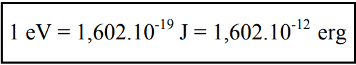 A unidade de energia conveniente para o estudo dos fenômenos de interação da radiação com a matéria em proteção radiológica é o elétronvolt (simbolizado eV), que corresponde à energia adquirida por um elétron ao atravessar um campo elétrico de 1 volt. Esta unidade expressa um valor muito pequeno e sua relação com unidades macroscópicas e a seguinte: