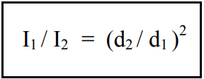 A razão para esse rápido decréscimo na intensidade da radiação é o fato que, quando se aumenta cada vez mais a distância da fonte pontual, a energia emitida é espalhada por áreas cada vez maiores. Como regra geral, a lei do quadrado da distância pode ser aplicada sempre que a distância da fonte for, pelo menos, sete vezes maior que a maior dimensão da fonte não pontual. O espectro eletromagnético está compreendido na faixa de freqüência de 10 a 1024 Hz e o comprimento de onda dos respectivos fótons encontram-se na faixa de 107 a 10-16 metros.
