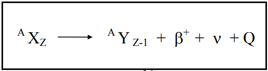 Quando o núcleo possui um próton em excesso, este é convertido em um nêutron e uma partícula beta positiva (pósitron).