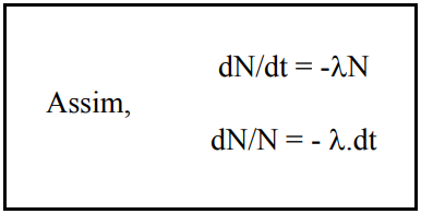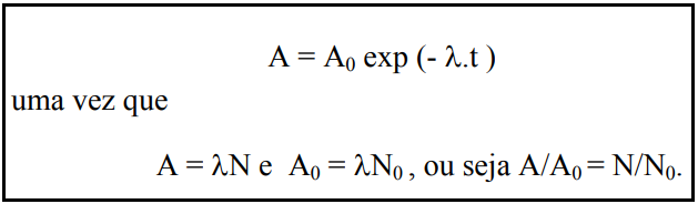 sendo esta a expressão da Lei da Desintegração Radioativa, que mostra que o número de átomos de um radionuclídeo diminui exponencialmente com o tempo.