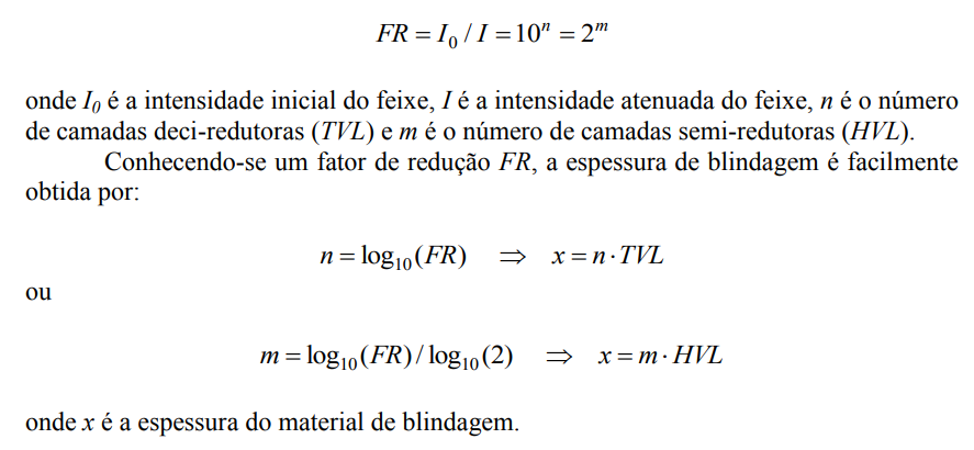 Entretanto, em certas situações, principalmente quando se opera com fontes intensas ou níveis elevados de radiação, além de colimadores, aventais, labirintos e outros artefatos, é necessário introduzir outro fator de segurança: a blindagem. A escolha do material de blindagem depende do tipo de radiação, atividade da fonte e da taxa de dose que é aceitável fora do material de blindagem.