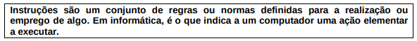 Na linguagem comum, entende-se por instruções “um conjunto de regras ou normas definidas para a realização ou emprego de algo”.