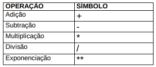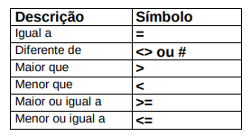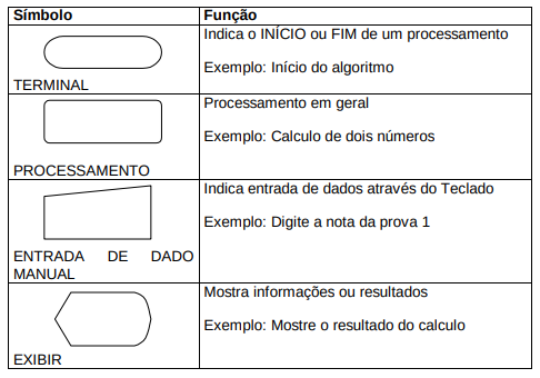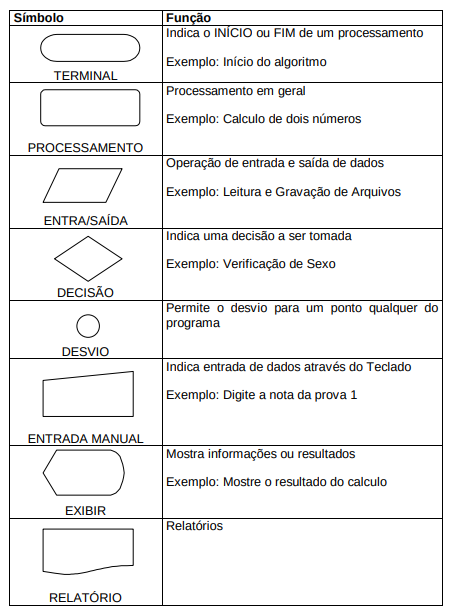 Veja no quadro abaixo alguns dos símbolos que iremos utilizar: