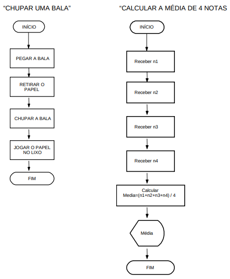Veja que no exemplo da bala seguimos uma seqüência lógica somente com informações diretas, já no segundo exemplo da média utilizamos cálculo e exibimos o resultado do mesmo.
