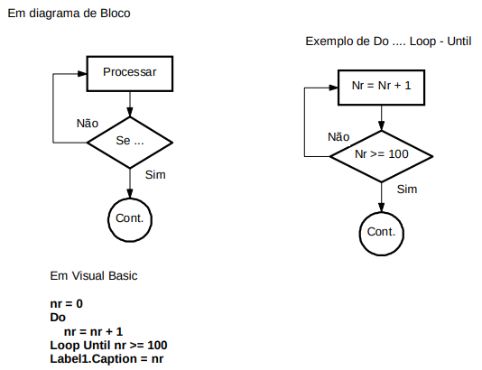 Neste caso primeiro são executados os comandos, e somente depois é realizado o teste da condição. Se a condição for verdadeira, os comandos são executados novamente, caso seja falso é encerrado o comando DO.