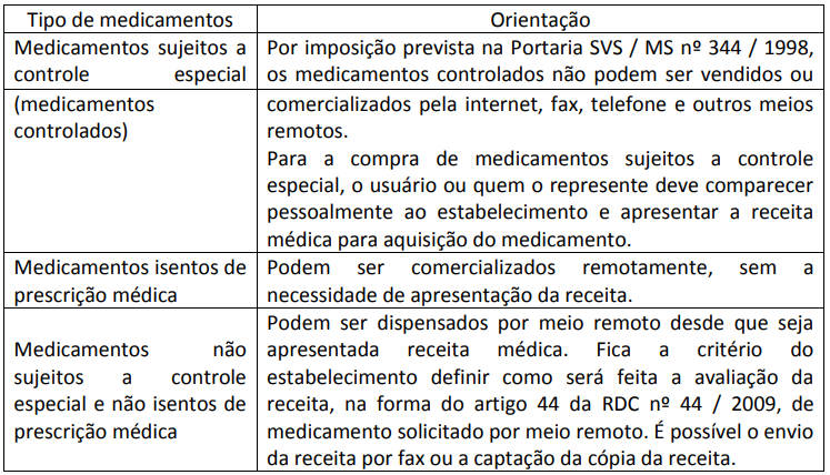Medicamentos proibidos e permitidos de serem comercializados por meio remoto: