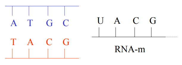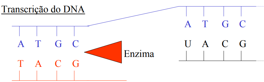 - Somente é gerado um lado da cadeia (“fita”de RNA-m)