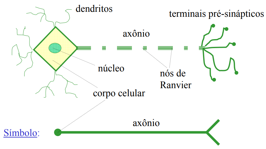 - possui múltiplas sinapses (pontos de contato que contém neurotransmissores)
