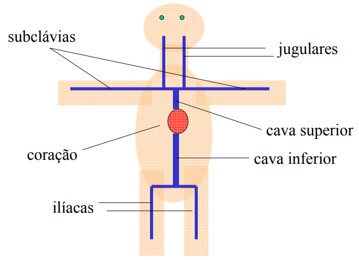 - Pressão venosa = 25 mmHg (sistólica) e 10 mmHg (diastólica)