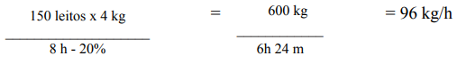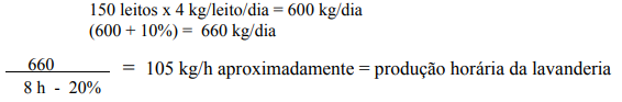 - Capacidade total de leitos de um hospital: 150 leitos, lavando 600 kg de roupa por dia;